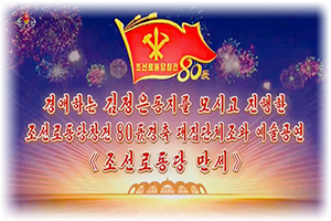 경애하는 김정은동지를 모시고 진행한 조선로동당창건 80돐경축 대집단체조와 예술공연《 조선로동당 만세》 朝青結成70周年記念 第10回 在日朝鮮学生少年団